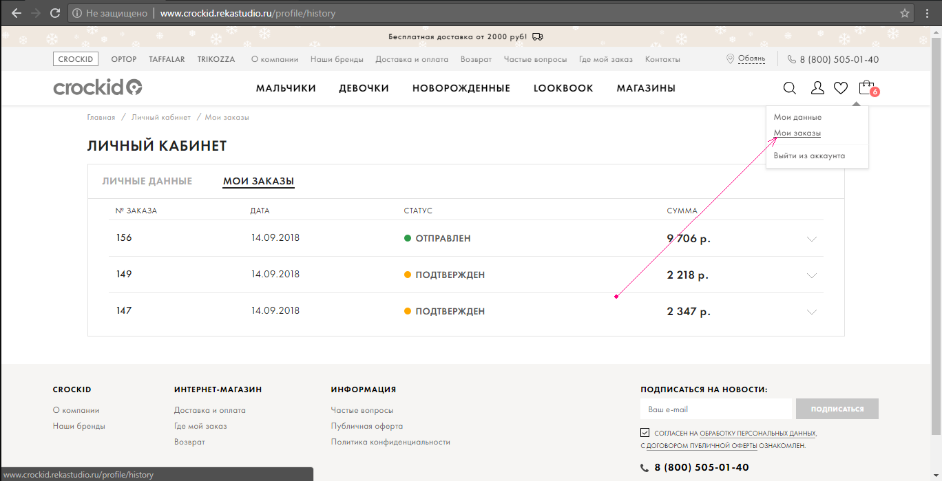 Шаг 1. Зайдите в Ваш личный кабинет в раздел «Мои заказы».